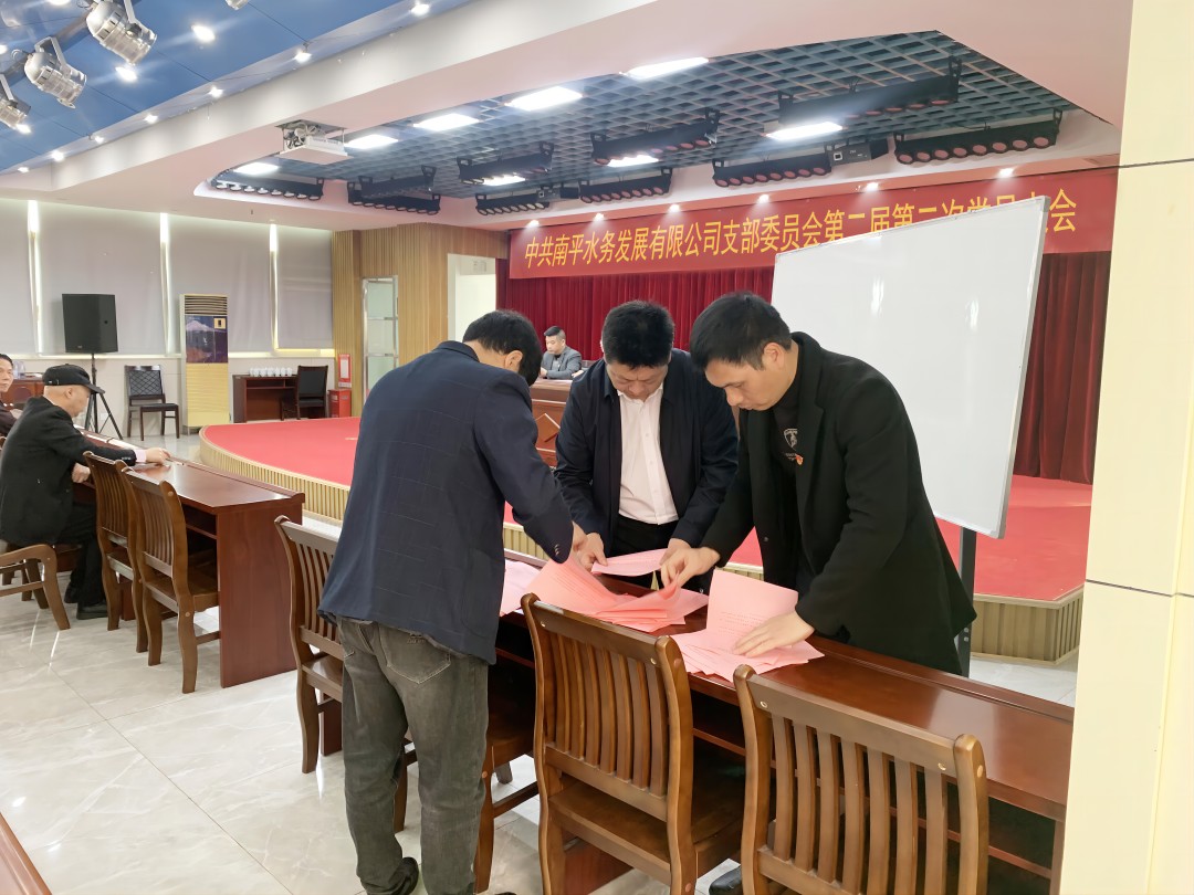 3月27日上午,中共南平水務(wù)發(fā)展有限公司支部委員會召開合并更名黨員選舉大會。第一黨支部書記、董事長、總經(jīng)理王良文同志參加會議并做重要講話,第二黨支部書記、副總經(jīng)理、工會主席康志萍同志主持會議,35位正式黨員參加了會議。